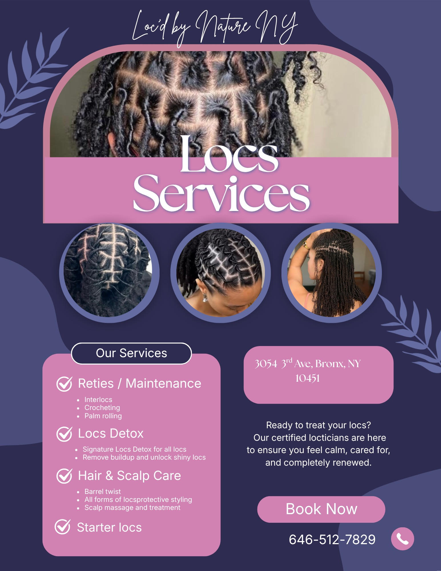 Loc'd by Nature NY brings authentic craftsmanship to every service. From starter locs to intricate repairs, we build something real with your hair.